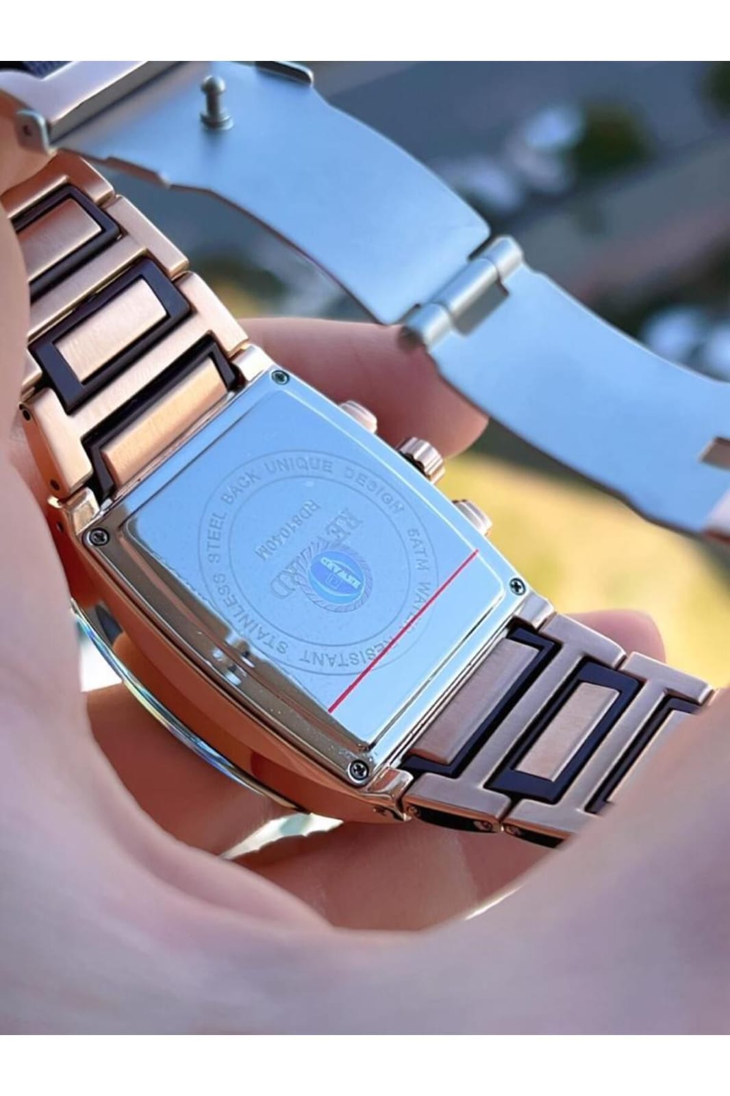 This striking black dial with rose gold accents exudes executive energy. The squared case is bold and balanced — made for men who lead, not follow.